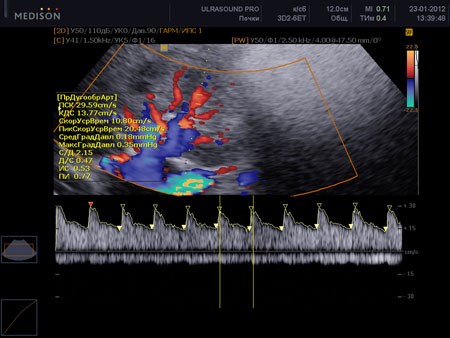 Дуплексное сканирование почечных артерий относится к технически сложным исследованиям. При проведении дуплексного сканирования сосудов почек очень важна подготовка пациента, так как газы, содержащиеся в кишечнике делают невозможным визуализацию почечных артерий.